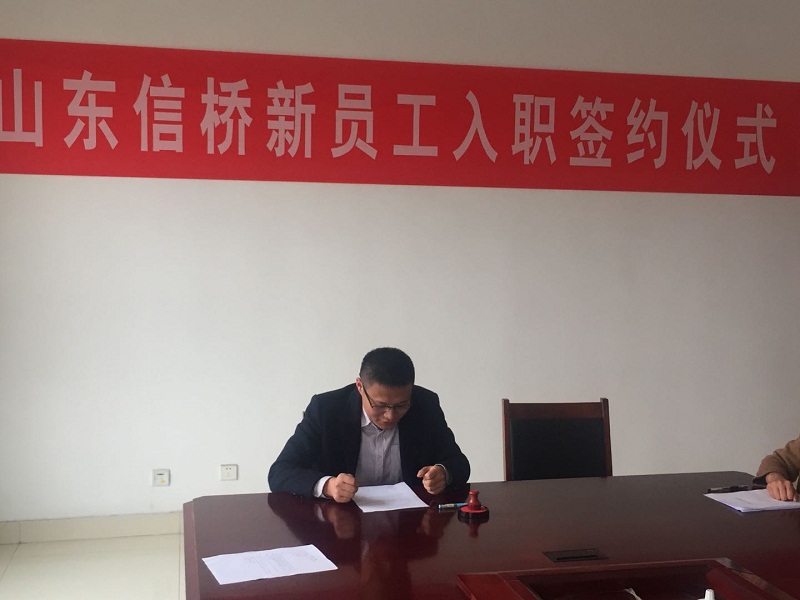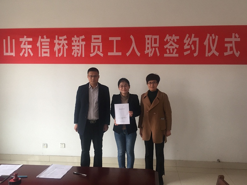 2018年11月30日下午3點(diǎn),新員工入職簽約儀式在泰安信橋二樓會議室舉行,公司副總石振偉與新員工李佳欣參加,同時公司財(cái)務(wù)總監(jiān)張燕與人事人員出席。