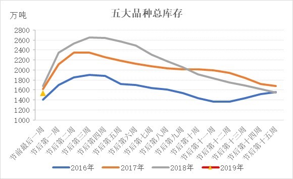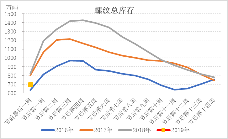 庫(kù)存低于去年同期,市場(chǎng)有望出現(xiàn)開門紅行情。根據(jù)Mysteel庫(kù)存統(tǒng)計(jì)數(shù)據(jù),2019年春節(jié)前最后一周五大品種庫(kù)存雖高于2016年,但低于2017、2018年,尤其是螺紋鋼,總庫(kù)存低于2018年同期122萬(wàn)噸。在產(chǎn)量高于去年同期的情況下,需求是好于去年同期的。市場(chǎng)對(duì)節(jié)后需求依舊抱有較大期待。