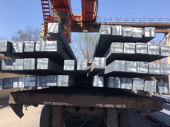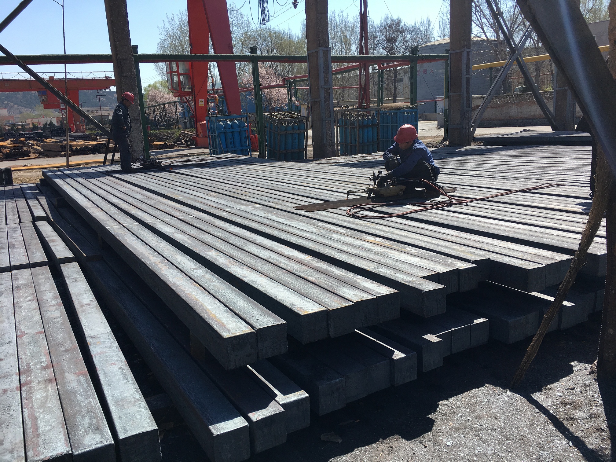 出了生產(chǎn)車間,映入眼簾的便是真正在等待加熱的鋼坯,鋼廠師傅們?cè)跍y量計(jì)算投入的鋼坯量,與實(shí)際可出的型材量。這是等體積法的運(yùn)用,可以更好的利用原材料,提高成材率。
