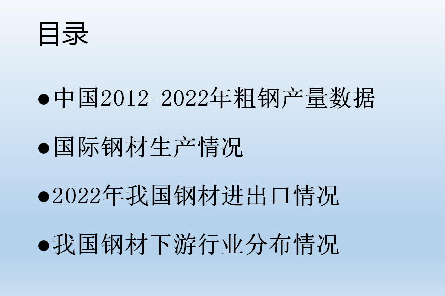 •我國(guó)現(xiàn)階段已經(jīng)初步實(shí)現(xiàn)城鎮(zhèn)化的建設(shè),隨著房地產(chǎn)需求的下滑,我們普通鋼材很難有一個(gè)大的增量,但是我國(guó)的特殊鋼材還有很大的發(fā)展空間。結(jié)合國(guó)家鋼材發(fā)展現(xiàn)狀,我們也慢慢的理解公司制定“高端、國(guó)有、人無(wú)我有”政策的現(xiàn)實(shí)依據(jù),希望大家能出通過了解行業(yè)發(fā)展的方向,明確目標(biāo),開發(fā)客戶,更好的規(guī)劃自己的銷售,取得好的業(yè)績(jī)。