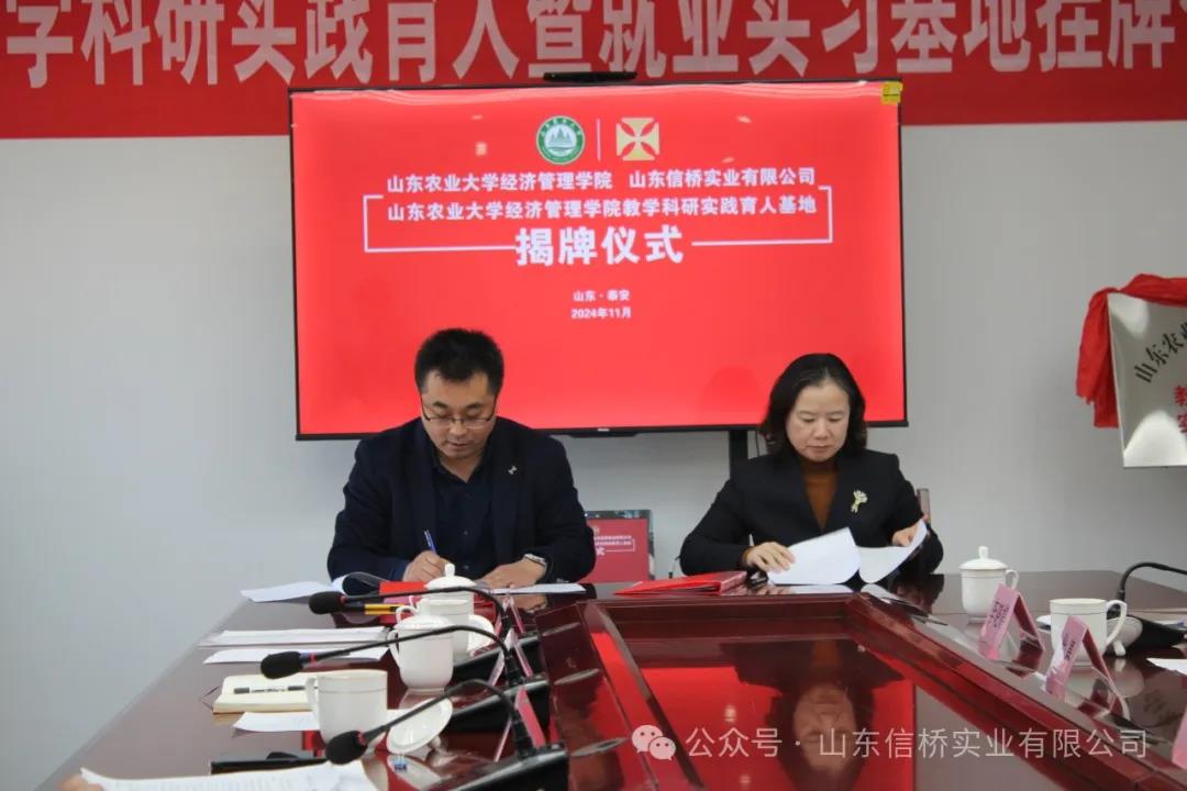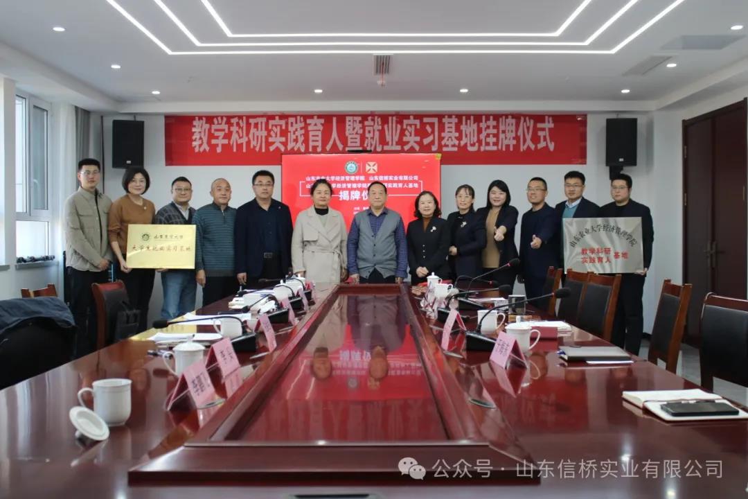 11.28日,山東農業(yè)大學經管學院與山東信橋實業(yè)有限公司在信橋公司舉行了教學科研實踐育人暨就業(yè)實習基地掛牌儀式。