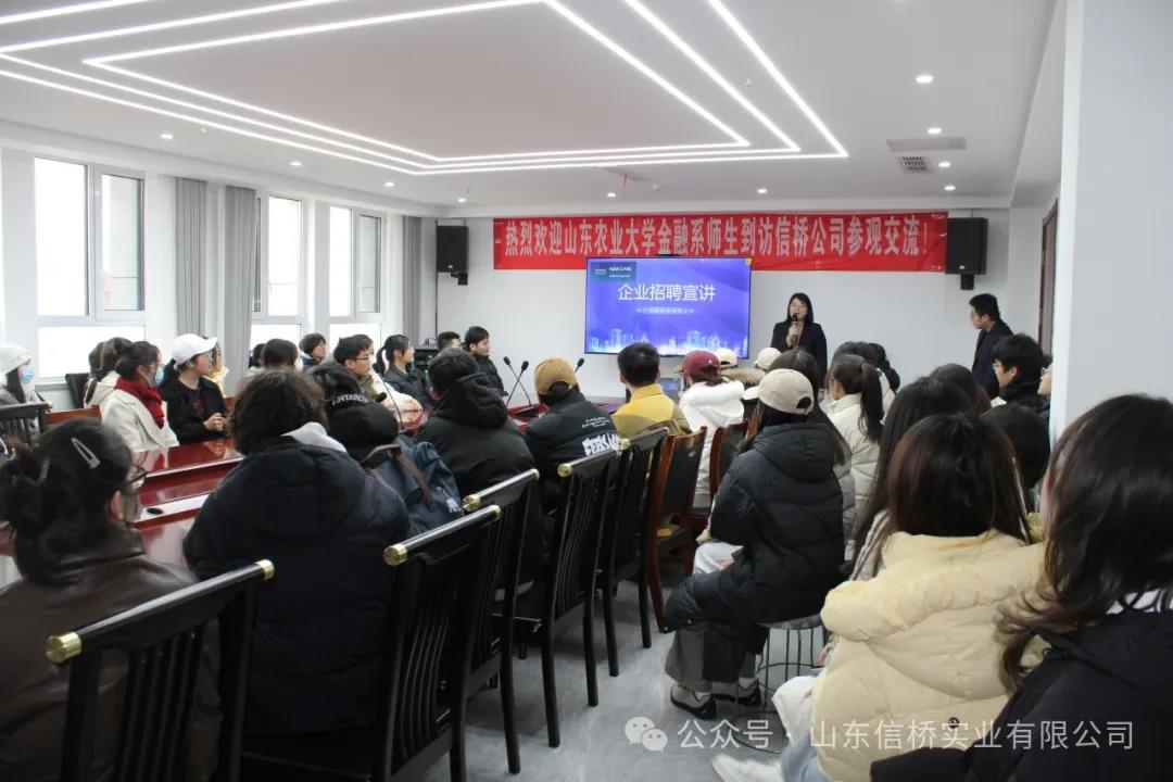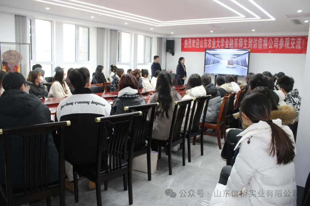 12月10日,山東信橋?qū)崢I(yè)有限公司迎來了山東農(nóng)業(yè)大學(xué)經(jīng)管學(xué)院金融系師生的參觀交流。